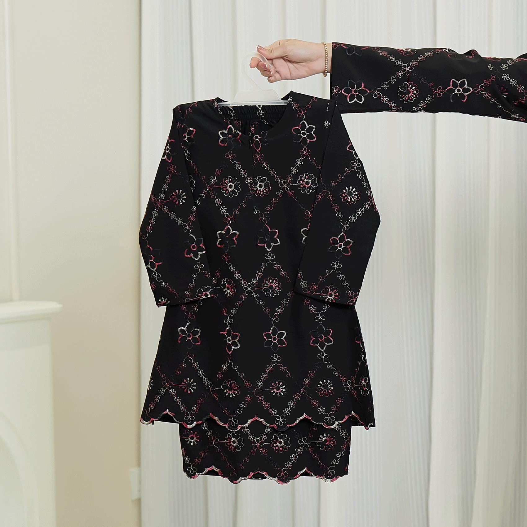- Cotton linen embossed with 3 tone color embroidery