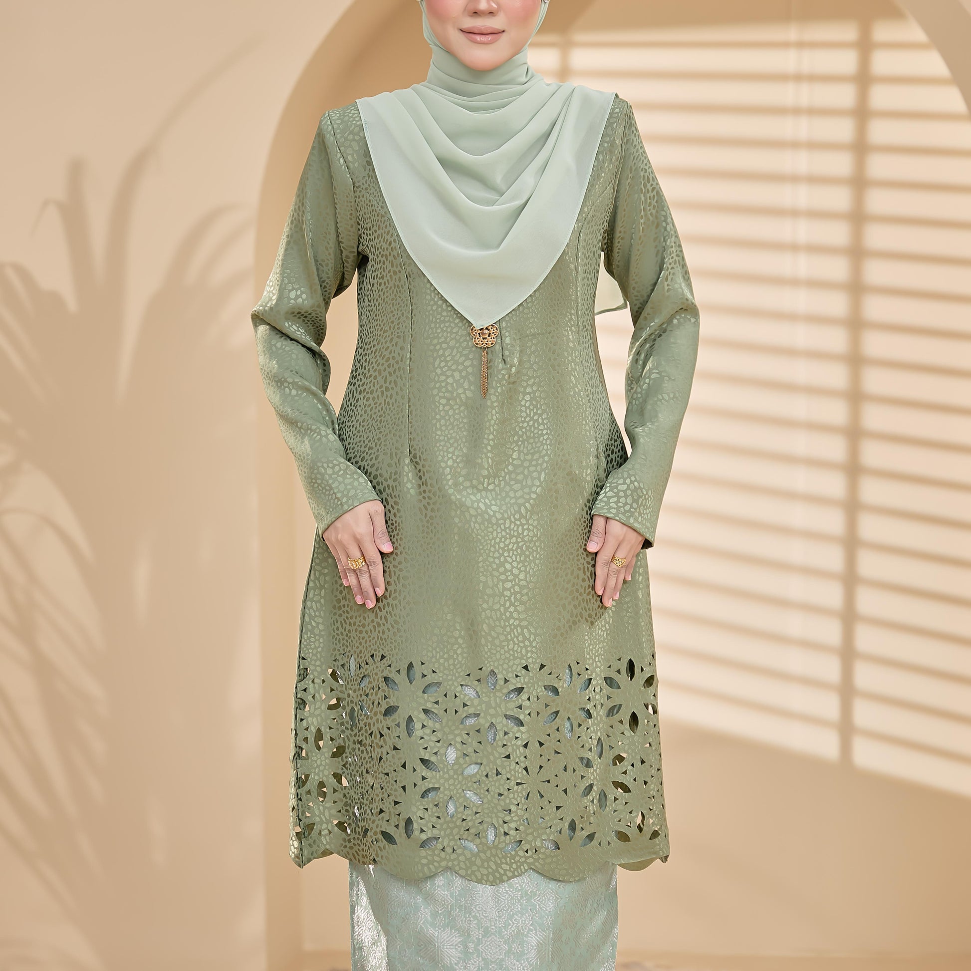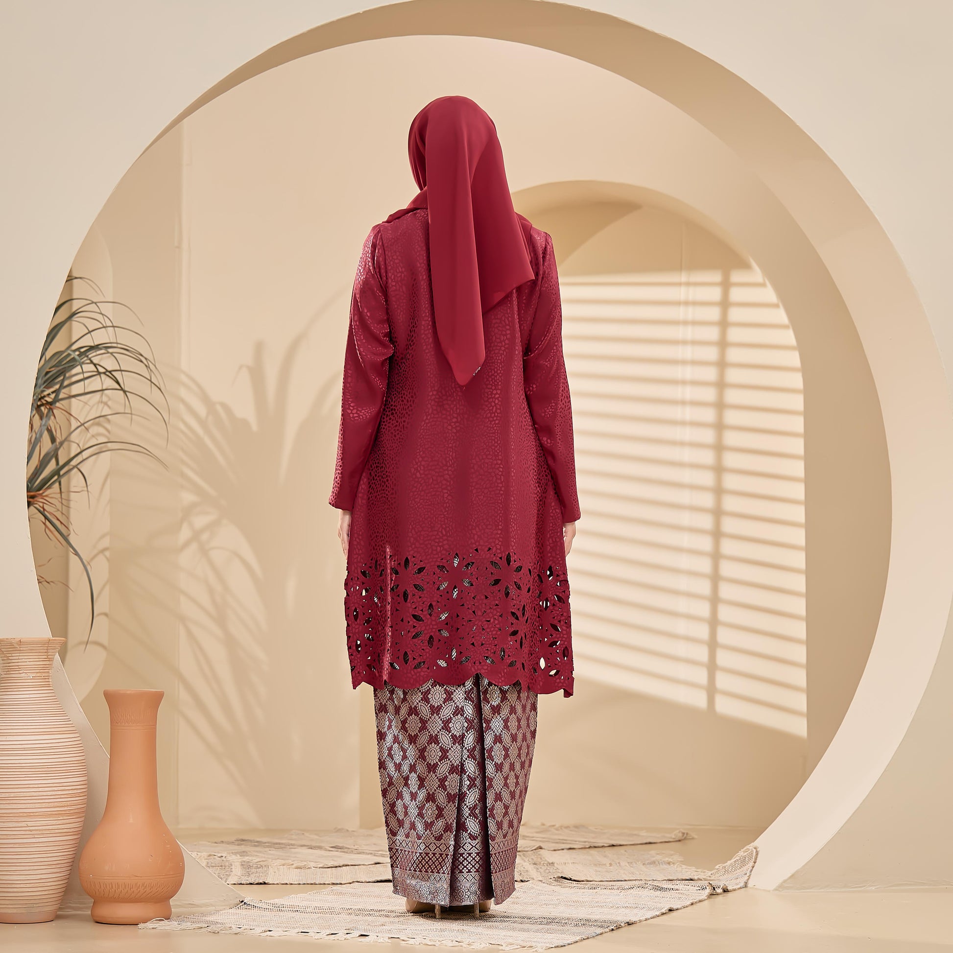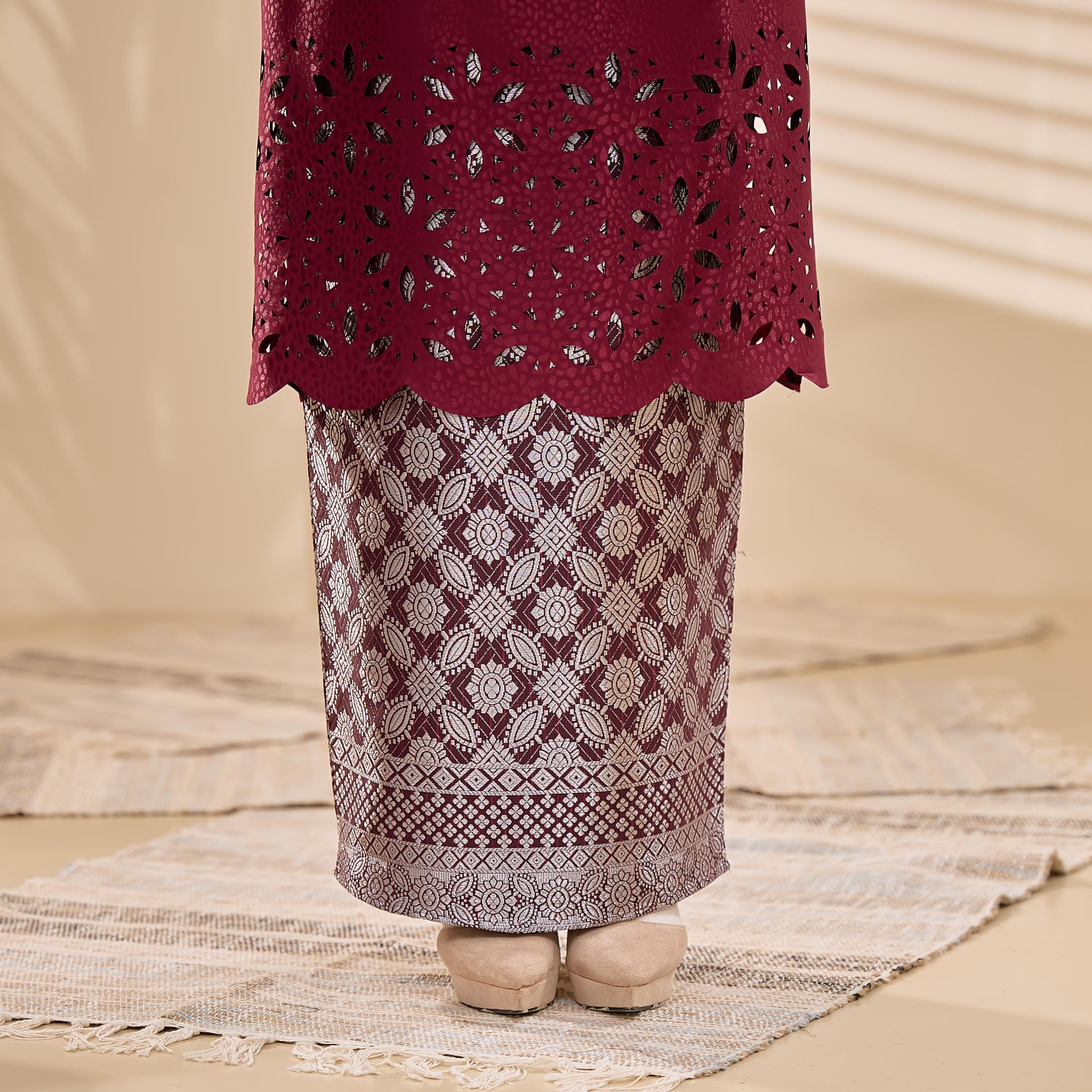 - Jacquard Laser Cut + kain songket + lace