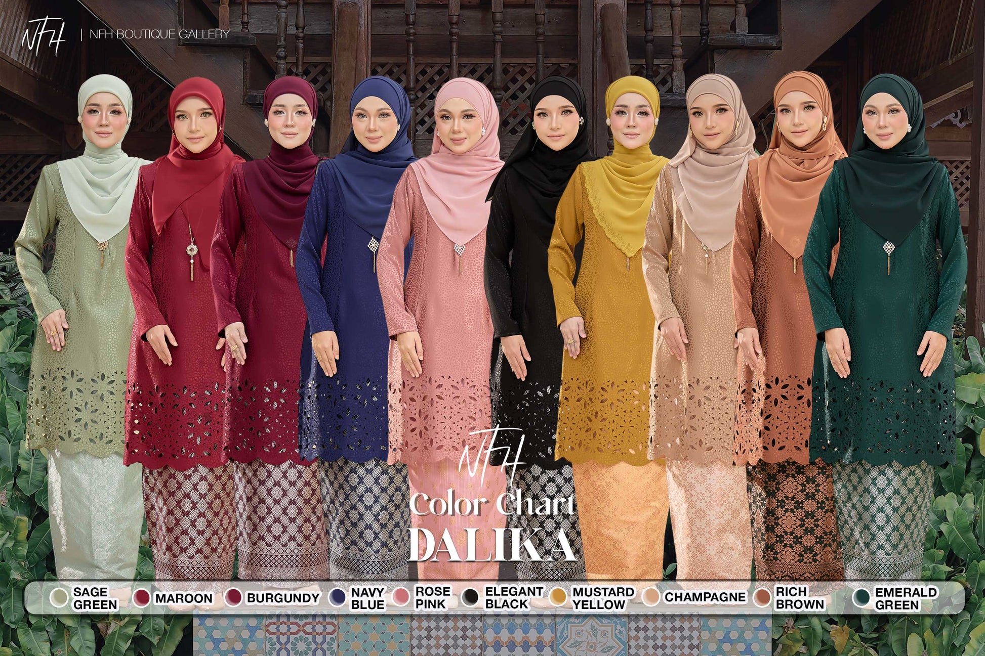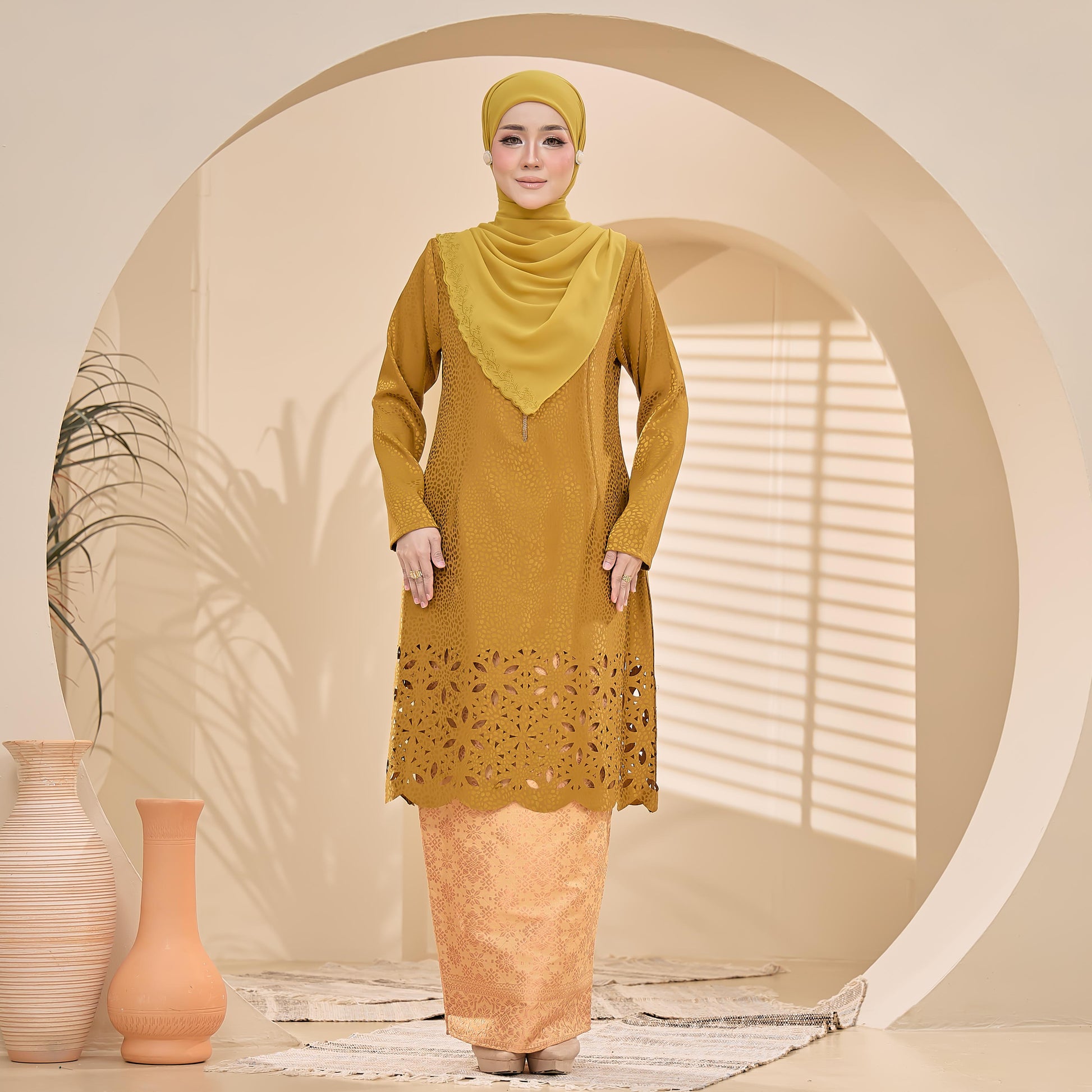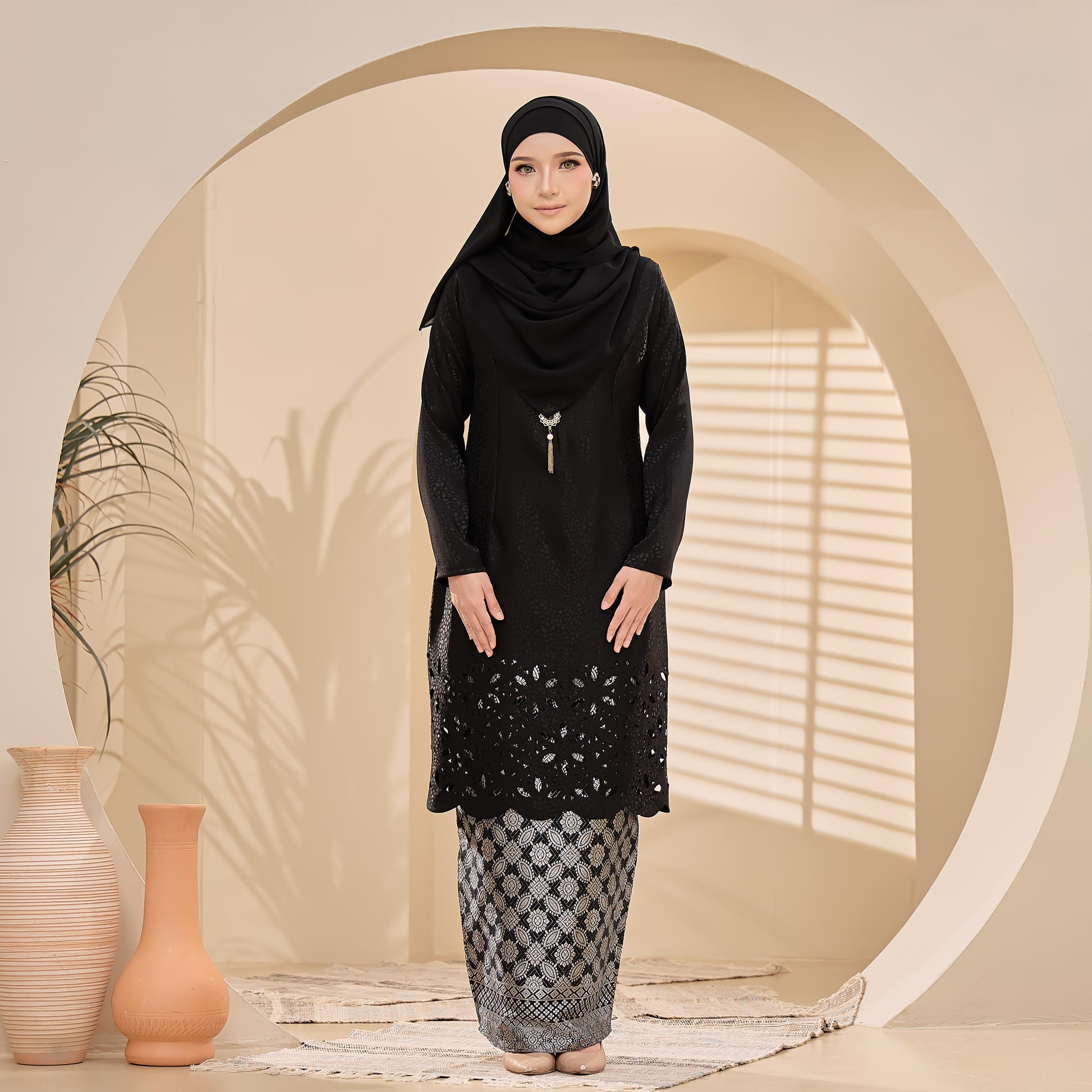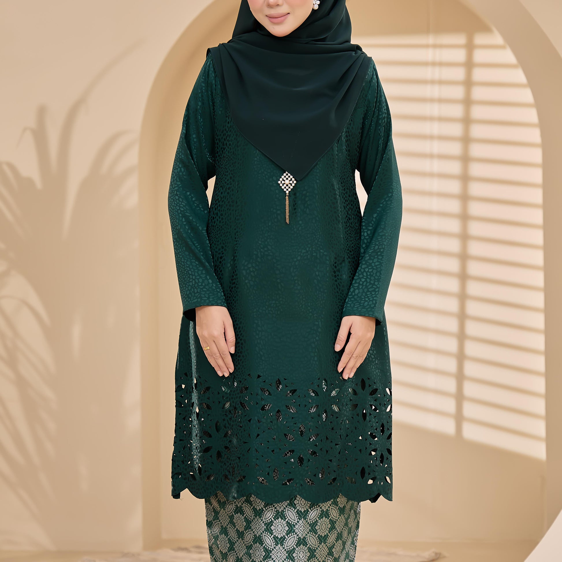 - Jacquard Laser Cut + kain songket + lace